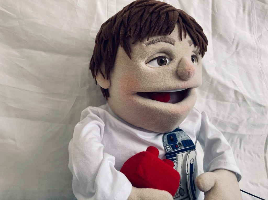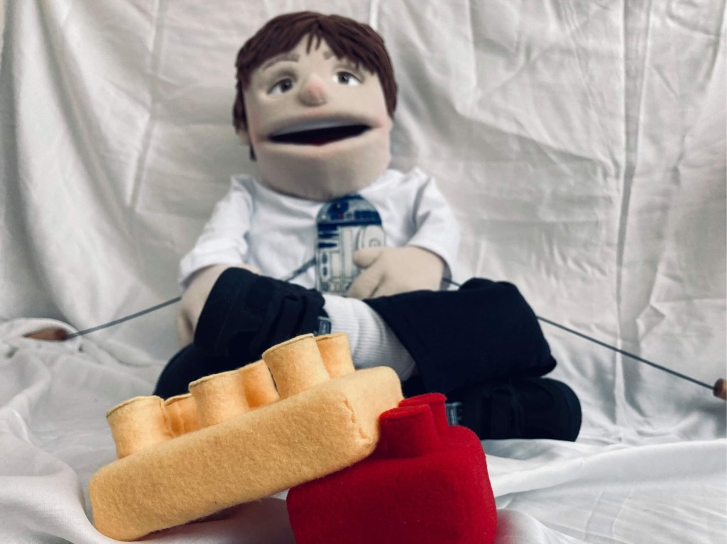 A custom made puppet. An eight years old boy and a star-wars fan.