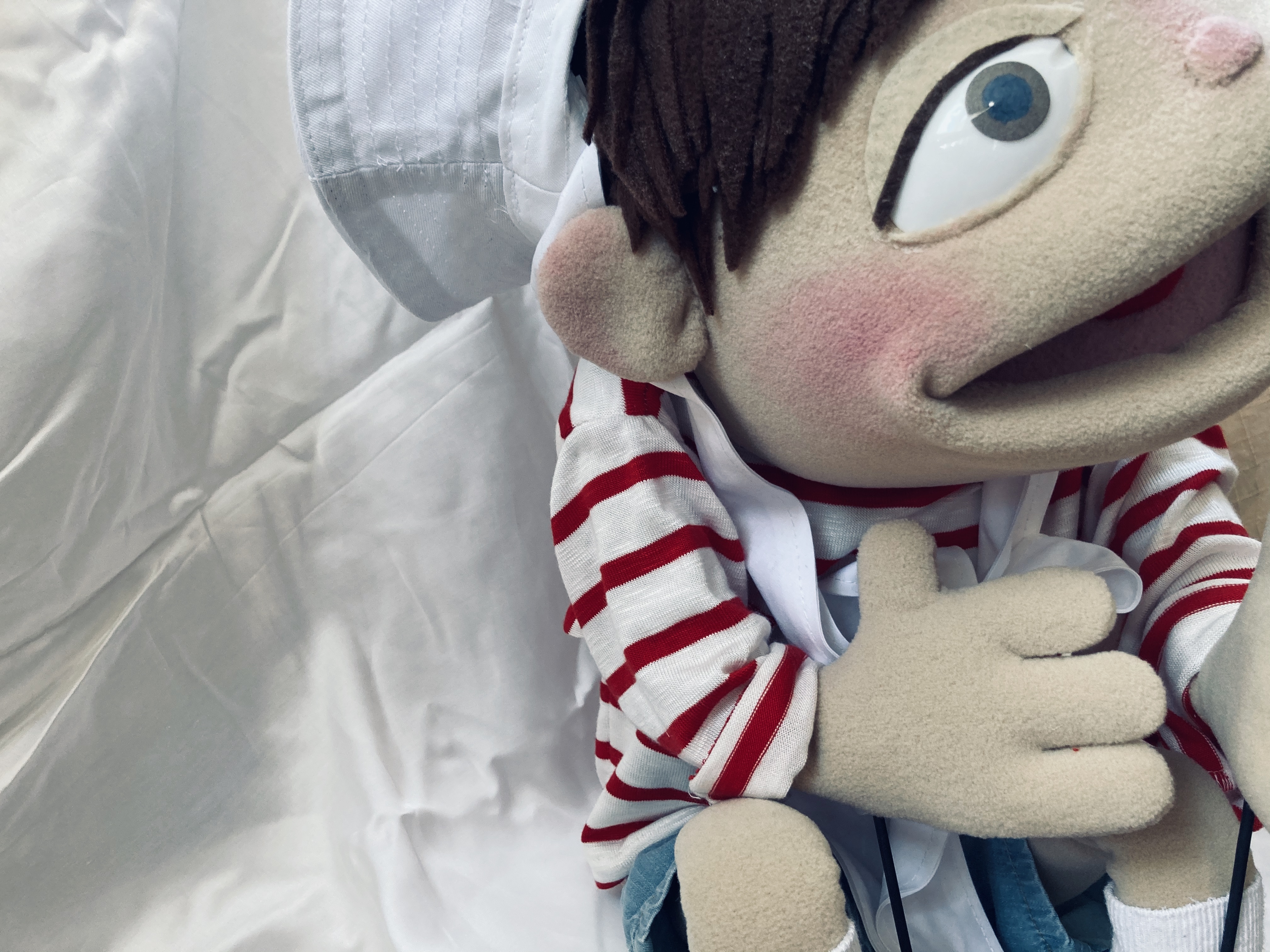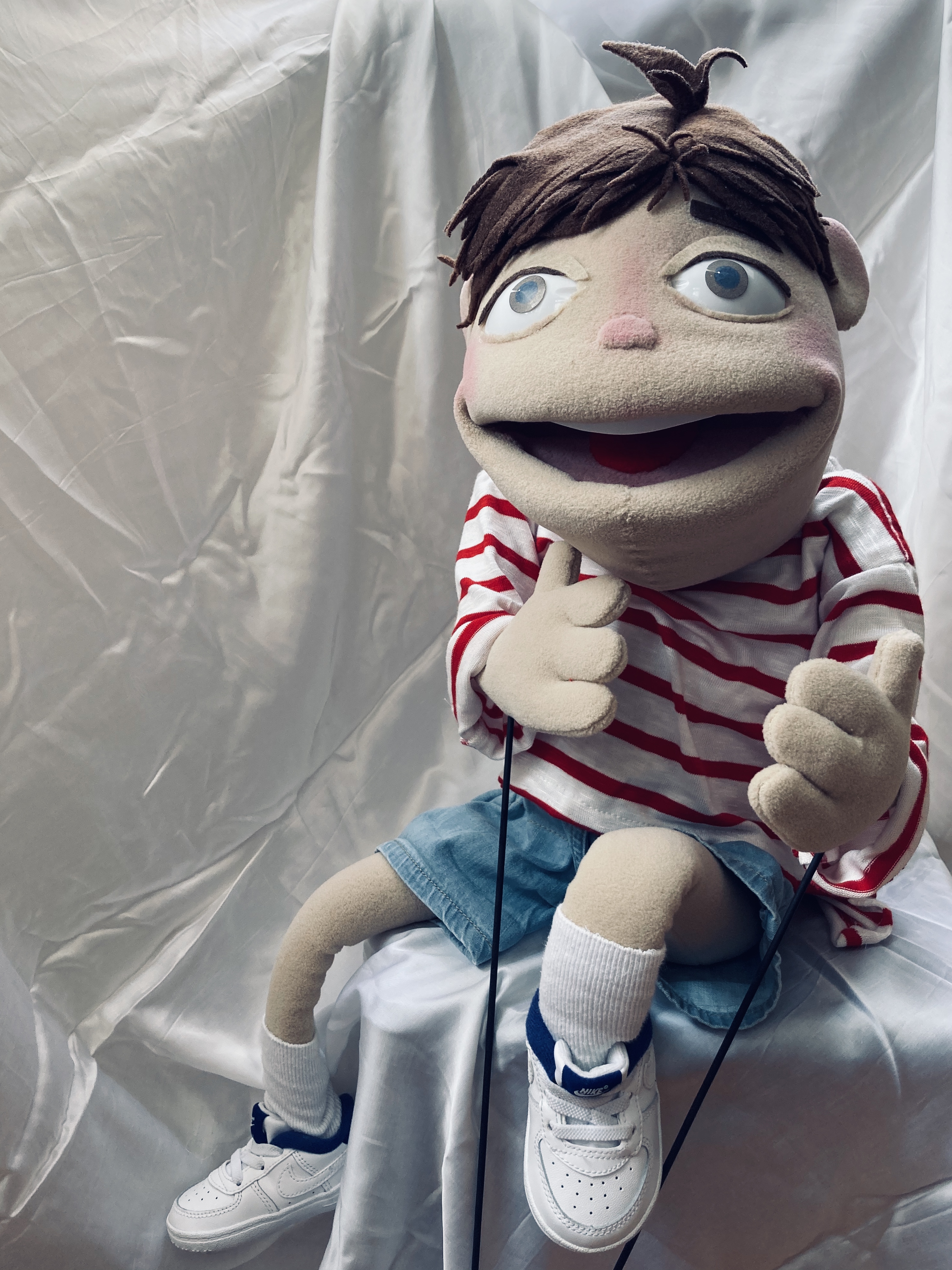 Fatih | Custom Puppet A stripes lover 6 years old boy w/ a big smile WordPress Instagram LinkedIn home