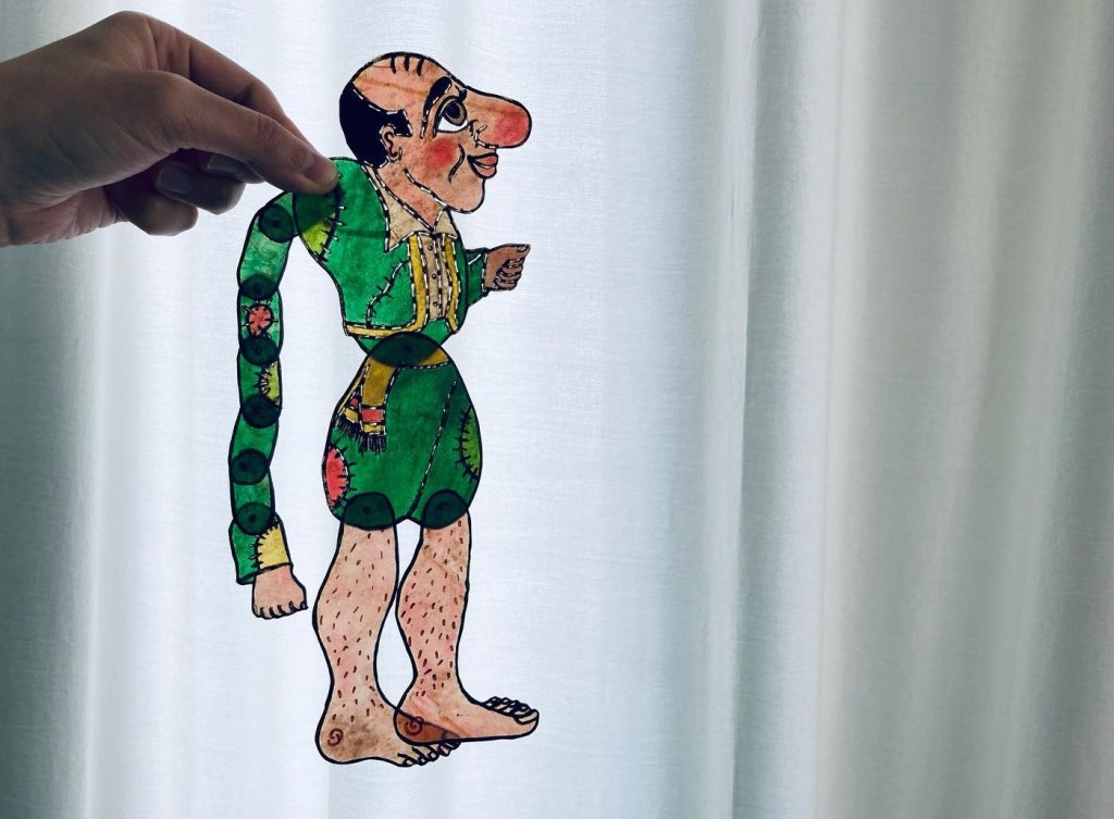 Traditional Turkish Karagöz 2D figurine, made from cow leather (30cm) and painted.